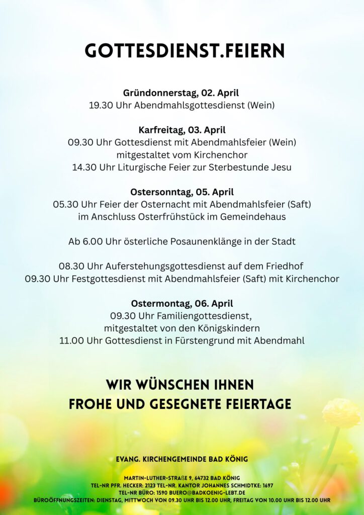 Gottesdienste am kommenden Wochenende