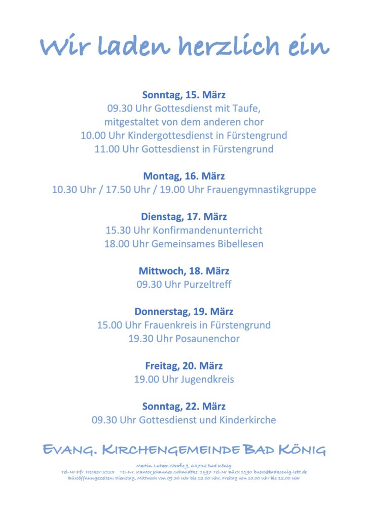 Gottesdienste am 15. März 2026